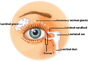 The entrances of the tear drains are called puncta, and the passages through which they drain (eventually to the nasal passages) are canaliculi.
